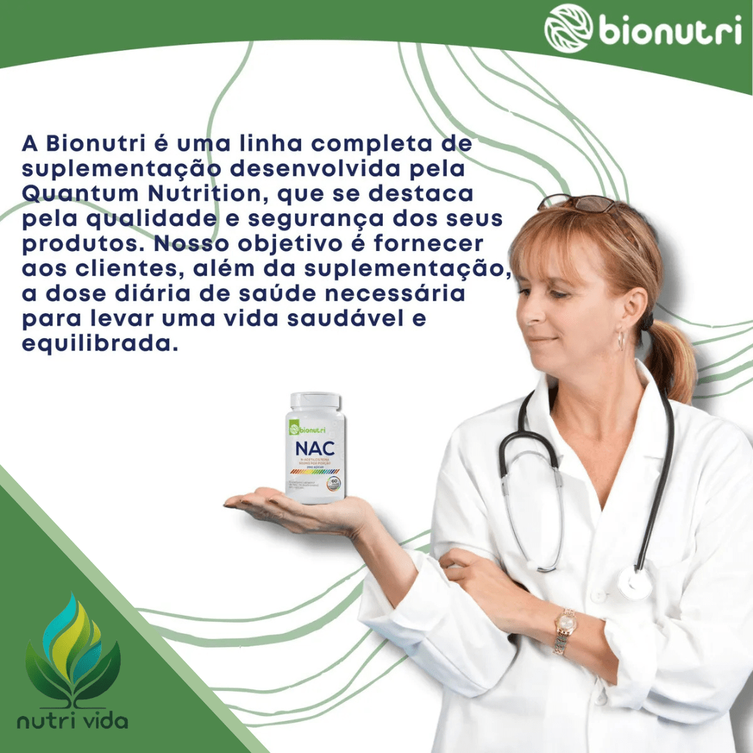 O NAC (N-acetilcisteína) é o precursor direto da glutationa, o antioxidante mais poderoso produzido pelo próprio corpo. É ele que desintoxica o fígado, limpa os pulmões, desinflama o intestino e devolve energia.
